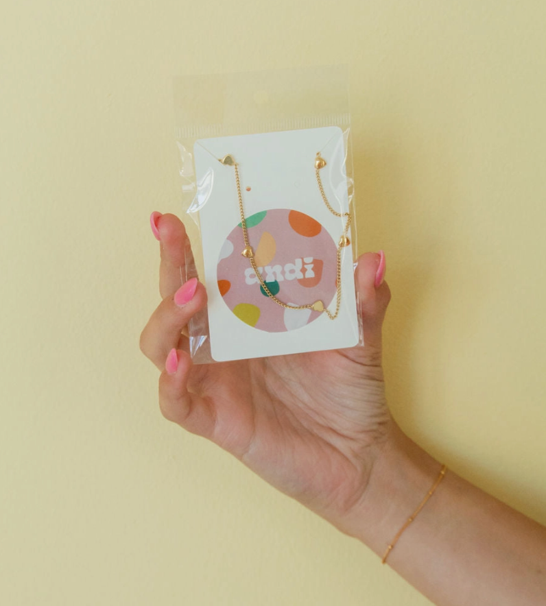 This stunning necklace is the most perfect dainty everyday piece. It's a simple gold chain (17 inches) with small hearts worked into the chain. It is made out of a high quality titanium steel material which means it's water resistant. It makes for the perfect everyday piece that you don't have to take off!