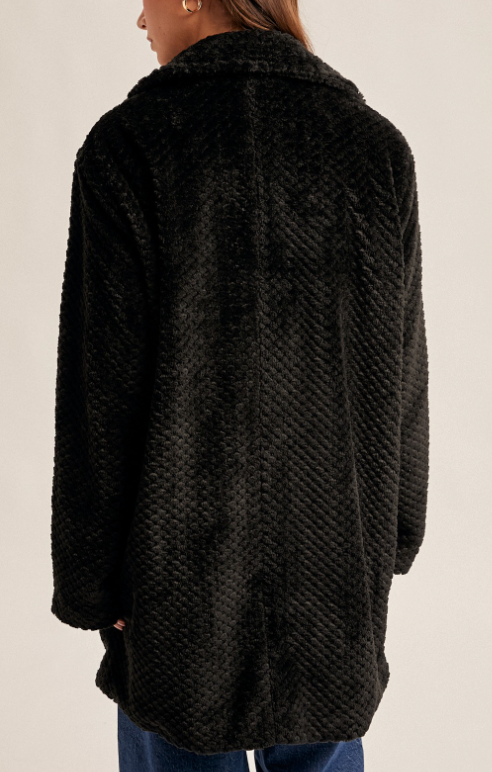 TEXTURED FAUX FUR DRAPE COAT -100% POLYESTER -LINING:100% POLYESTER
