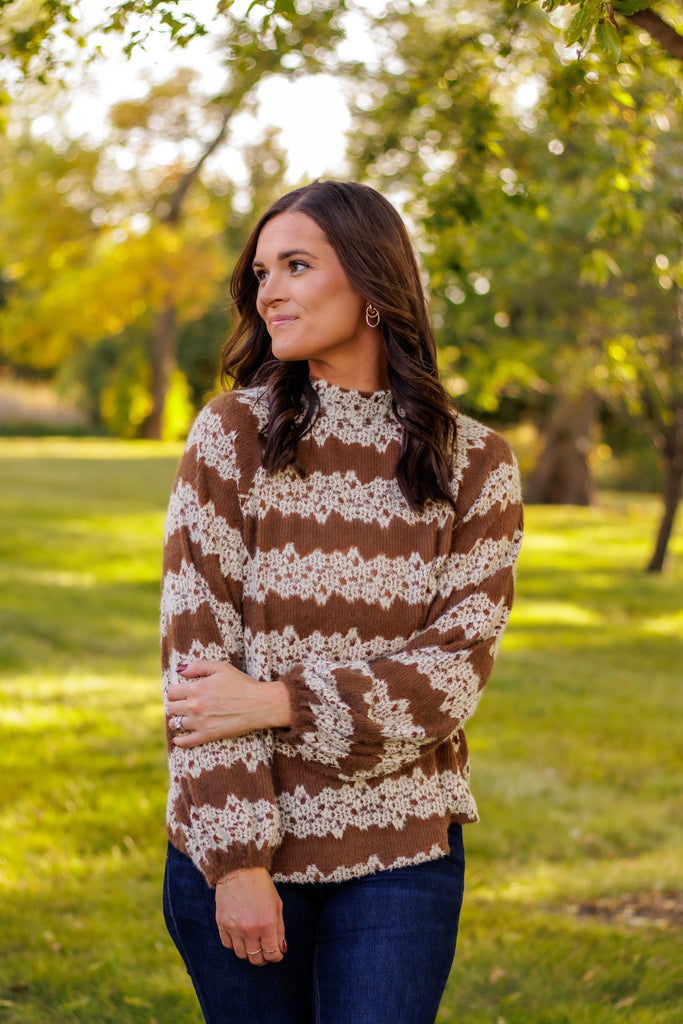 - BRUSHED - FLORAL JACQUARD KNIT - MOCK NECK - PUFF SLEEVE - LOOSE FIT